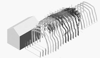 За да осигурят свободно пространство и красива гледка към потока, архитектите решават да я удължат значително. Старата колибка сега представлява спалня. Допълнителната конструкция се простира на 30 кв. м, като може да бъде удължавана с помощта на макара.