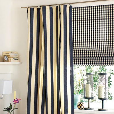Комбинацията между райета и карета може да използвате и при решението на прозорците. Изберете щора, която ще Ви осигури необходимото уединение и дълго перде за малко повече разкош. Използвайте съчетанието от дребно каре и едри райета.