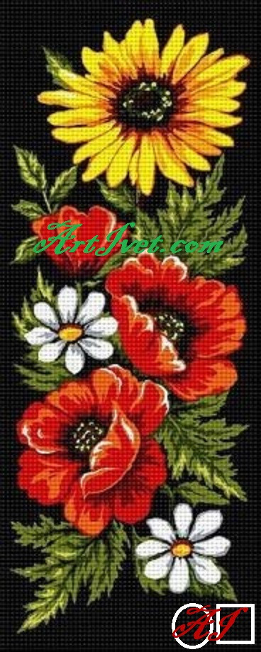 Диамантен гоблен МАКОВЕ СРЕД ТРЕВАТА - Кръгли диаманти 28х21